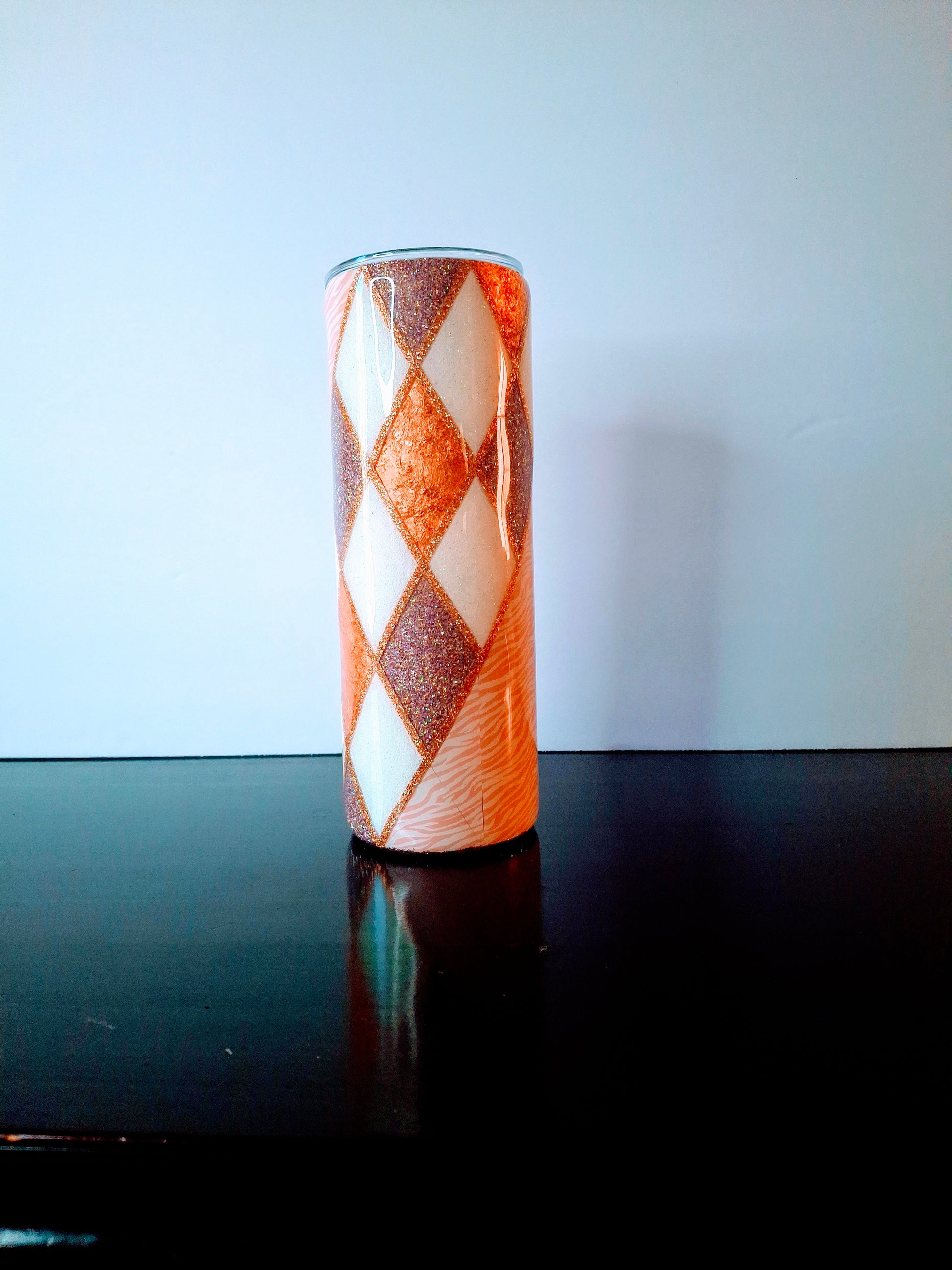 The 24oz Glitter Argyle Zebra Banner Split Tumbler is the perfect accessory to showcase your unique style. Stay refreshed in elegance, make your mark, and let your personality shine with every sip.